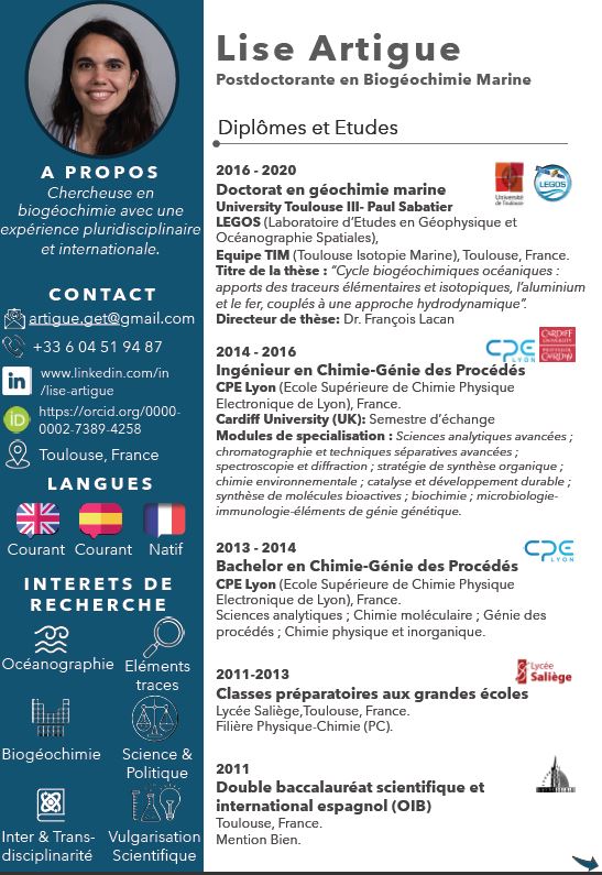 Lise is a biogeochemist. (CV here below). As a post doc she will work with the CEFREM team.