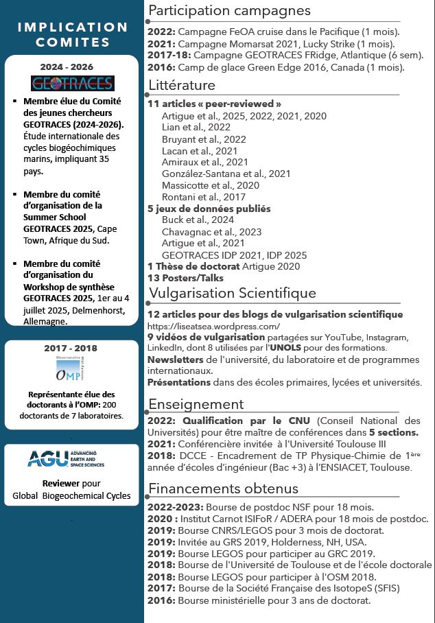 She is specifically responsible for analyzing the geochemical and hydrodynamic data collected by the instrumented moorings deployed during MARGOBAY.et MARGOCEAN.